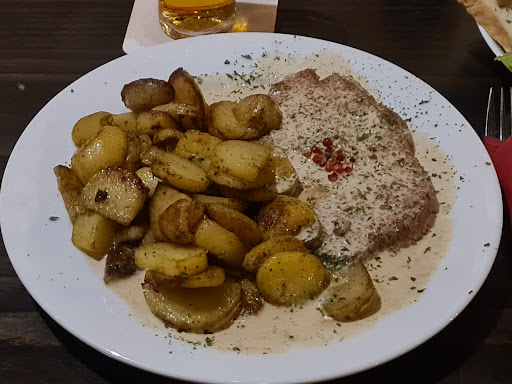 Read moreEigentlich ist das eine nettes Restaurant mit schöner Kneipenatmosphäre und trotzdem verliert der Besitzer das Maß für die Dinge. Wir hatten (zwei Erwachsene ein Kind) jeweils ein Essen mit Schnitzel Pro Portion kostete es zwischen sieben und acht Euro, was wirklich sehr günstig ist, und wir hatten noch diverse Getränke unter anderem eine Flasche Wasser. Und diese Flasche Wasser ist jetzt Stein des Anstoßes. In der Rechnung tauchte die Wasserflasche zunächst nicht auf, die Bedienung hatte dann die Rechnung noch mal korrigiert, und siehe da eine Differenz von 8,50 €. Die Wasserflasche still kostet 8,50 €. Für mich unbegreiflich, zudem es sich um eine völlig unbedeutende Marke handelt, die in jedem Supermarkt pro Flasche für 0,95 € zu erwerben ist. Demnach absoluter Wucher und nicht nachvollziehbar und in meinen Augen komplett am Ziel vorbei geschossen. 8,50 € pro Flasche Wasser grenzt an Unverschämtheit und der Begriff Wucher alleine reicht...