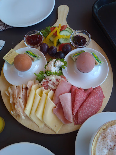 Toll zu hören dass man Gäste am liebsten nur mit nem Code vom Einkaufszettel aufs Klo lassen würde. Hier wird nur gepinkelt was im eigenen Haus getrunken wurde. So geht Gastronomie! Das ist sooo gastfreundlich. Deshalb ist man dann auch Bäckereifachverkäuferin, da hat man Ahnung wie man Gäste behandelt. Und wie man es schafft daß selbst warme Brötchen nicht knusprig sind... Wenn beide Angestellte mehrmals über die Theke / Anrichte auf die Lebensmittel husten, macht das keinen guten Eindruck. Ich finde das sogar irgendwie eklig, aber vielleicht stelle ich mich ja auch nur an. So‘n bißchen Rotze.... zwei Brötchen, Marmelade, Kaffe, büschen Aufschnitt, gründotterhartes Ei (von weichen Eiern stirbt man ja...) auf die Theke gestellt, zack 7 Euro nochwas. Kleingeld mitnehmen, die Dame macht aus dem Wechseln um 8:00 schon ein Drama. Ich meine jetzt nicht den Vollpfosten der um 8:10 seine zwei Brötchen mit nem €100er bezahlen wollte. Selbst für nen Zwanziger haben die nicht genug Wechselgeld. „Neeee, ich musste schon von Privat wechseln“. Dann macht den Laden zu. Kein Ärger mehr mit Geld, doofen Touris und Geschäftsreisenden. Und im Parkhaus um die Ecke kann man umsonst pinkeln. Das ist so ne Bude wo man nur wieder hingeht wenn man unbedingt muss... ausser pullern jetzt... Der Abräumwagen ist nett. Der hat ein Schild „Danke fürs...