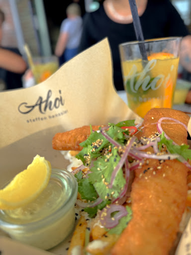 Read moreDas Ahoi ist ganz vorn direkt am Eingang des Hafens. Die Außenplätze bieten einen tollen Blick auf den Seehafen. Man sitzt recht ruhig und selbst beim Schwedenfest war es hier nicht zu laut. Das Mobiliar ist ausgesucht und hat ein angenehmes Flair. Hochstühle für die Kleinsten gibt es genug und auch richtig gut (bestimmt Hauck), nicht solche Ikea Teile, wie alle haben. Innen Ostsee auch sehr schick. Die Toiletten sind 1a! Man sollte besser reservieren sonst geht die Vorfreude baden.