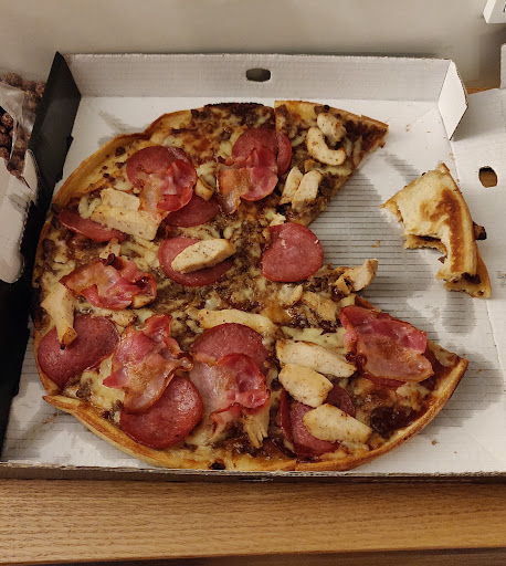 Read moreHeute (Samstag 13:30uhr) habe ich mit meinen Kindern bei Dominos bestellt und war positiv von dem Service überrascht! Auf der einen von drei Pizzen wurde der kalte Belag vergessen, in dem Fall Salat, Parmesan und die Dressing Soße. Ich habe angerufen um dies mitzuteilen und mir wurde mit einer freundlichen Stimme gesagt, dass die Pizza sofort neu gemacht und nachgeliefert wird, außerdem soll ich die falsch gelieferte Pizza behalten und essen. Nicht einmal 20min später bei einer Entfernung von ca. 4km kam eine heiße Pizza mit allem drum und dran und einem leckeren Cookie (als Entschädigung) an! Gerne bestelle ich wieder hier, alleine auch wegen dem netten Lieferanten, der sich auch mehrmals entschuldigt hat. Ansonsten war alles super lecker und die erste Pizza Runde kam nach...