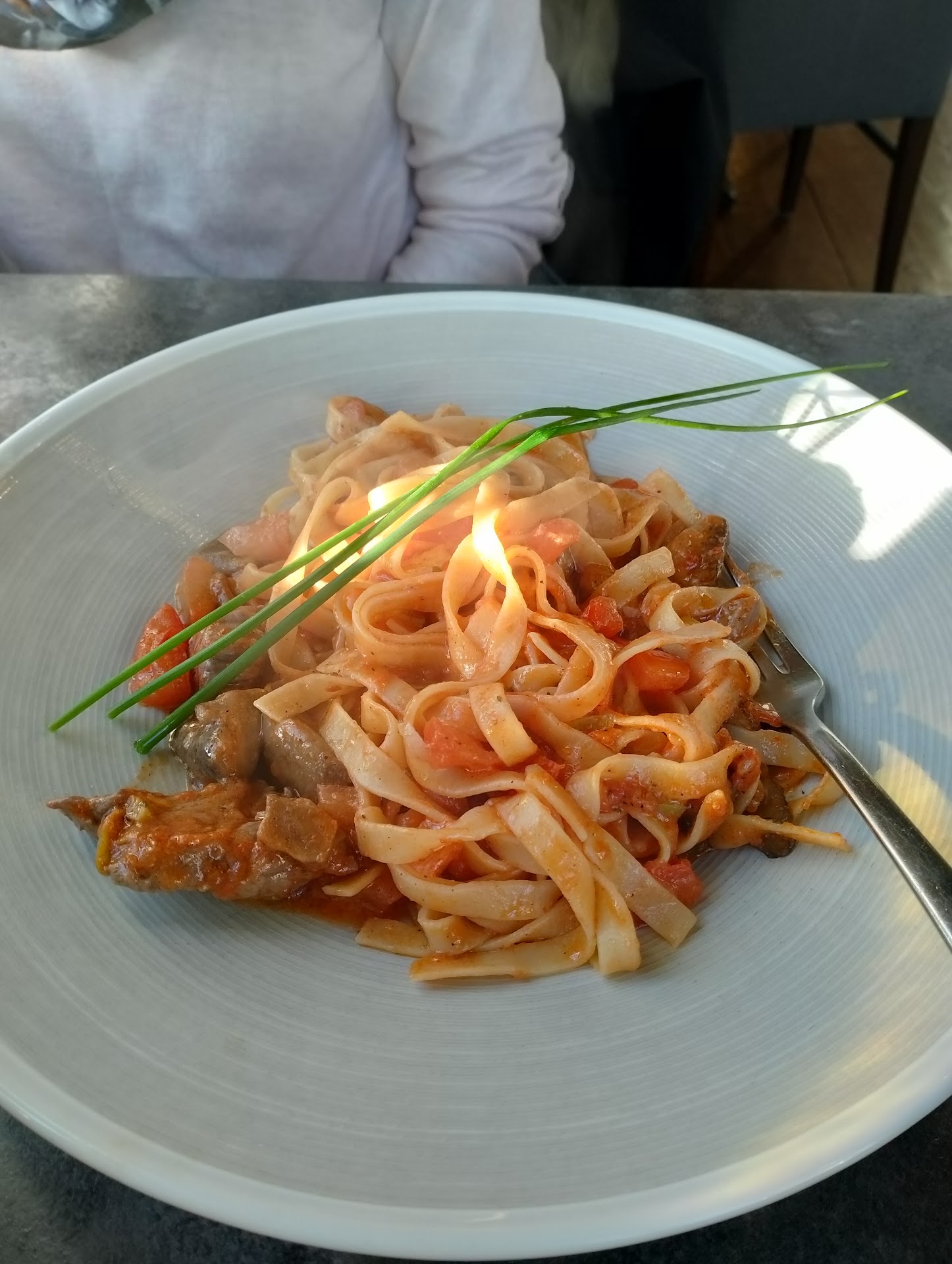 We had Pizza, pasta, and a salad. The pizza is priced 10eur and I would have expected freshly made goods. Instead, we have got a 'frozen pizza'-like meal, overly salted and with dry herbs. Cheese was just a chewy mass, hardly distinguishable. Caprese salad came with 1 (!) small leaf of basil. Pasta was overly cooked.