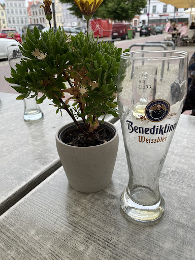 Read moreEigentlich wollte ich nur einen schönen Eisbecher essen, ich betrat das Restaurant von der Straßenseite (Hegede) her, ich war im Gastraum der einzige Gast, die Aussenplätze auf der Marktseite waren besser besetzt, das Wetter war sehr schön. Ich wählte mir den "La Piazza - Becher" aus, den teuersten Eisbecher auf der Karte, bei dem man sich überraschen lassen kann (oder soll🤔). Dann nach einer geraumen Weile kam der Becher, optisch gewaltig, mit einem gewaltigen Papierfächer, für Kinder vielleicht ganz witzig, sonst eher unnötig. Ansonsten dekorativ recht gelungen, also das heißt ganz viel bunte Streusel.... Nun wollte ich aber nicht unbedingt einen Kunstpreis vergeben, sondern das Ding aufessen. Der Becher enthält sehr viele Früchte, das Melonenstück, die Kiwi, die Erdbeeren und das Bananenstück waren ganz in Ordnung, die Ananas mehr so "na ja", wenn man diese mehr von außen andrappierten Früchte erfolgreich vertilgt hat, dann ist man an dem großen Sahneberg angelangt den es nun gilt wacker abzutragen, darunter tummelt sich eine Art Obstsalat, dessen Bestandteile nicht so ganz einfach zu identifizieren sind. Wenn man jetzt tapfer weitermampft stößt man dann tatsächlich auf Eis(!!!), das muss die angekündigte Überraschung sein! An diesem Punkt angekommen hatte ich plötzlich eine "Erscheinung", es erschien nämlich die Bedienung mit der Rechnung und forderte recht forsch die sofortige Bezahlung selbiger, indem man die Rechnung zu mir hin schob, begleitet von einem freundlichen "Bezahlen!" , welchem ich nachkam und anschließend verschwand. Übrigens, unter dem ziemlich wässrigen Eis kommt nochmal Obstsalat... Ich glaube hier lebt man, zumindest zum Teil auf Kosten der recht zahlreichen Tagestouristen, die ja schnell...