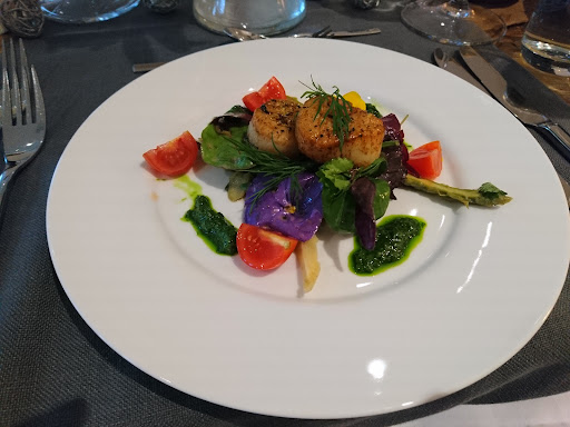 Read moreDas Ambiente im Restaurant ist hell und ansprechend, tolle Klavierbegleitung und ein Kaminfeuer. Wegen der Hotelrezeption und der anreisenden Gäste empfiehlt es sich besser einen Platz weiter hinten wählen. Sehr freundliches und kompetentes Personal. Als Vorspeisen gab es für uns, nach einem leckeren Gruß aus der Küche, Jakobsmuschel und Capachio- sehr gut abgeschmeckt, toll angerichtet: exellent! Dazu ein guter Riesling Kabinett im offenen Ausschank. Als Hauptgang hatten wir einmal Maishähnchenbrust und einmal Ribeye-Steak. Dazu bestellten wir einen schönen Rioja Reserva, der mit der richtigen Temperatur und gelüftet serviert wurde. Das Hähnchen war recht kräftig gewürzt. Das Steak leider versalzen. Anstandslos habe ich umgehend ein neues Stück Fleisch bekommen. Die Hauptgerichte konnten leider nicht ganz das Niveau der Vorspeisen erreichen. Als Dessert hatten wir Käsevariationen und ein phänomenales Parfait aus Erdbeeren und weißer Schokolade. Eine sehr leckere Nachspeise, die vom Service kompetent empfohlen wurde. Zum Finale gab es noch Espresso und einen sechszehnjährigen Lagavulin. Die Preise sind nicht niedrig aber angemessen Fazit: Ein sehr gelungener Abend in einem Restaurant das eine Bereicherung für die Gastronomie in Wismar darstellt - noch keine Perfektion aber auf dem...
