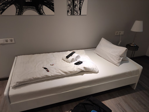 Read moreWaren im September für 6 Tage wegen Familienfeierlichkeiten in Witten in dem Hotel und haben uns dort sehr wohl gefühlt.||Das Zimmer war klein und gemütlich (Nr. 6) und lag zur ruhigeren Hofseite, die vorderen Zimmer zur Hauptstraße sind lauter. Man muss aber auch sagen, dass die Fenster sehr gut abdichten und sogar Ohrstöpsel bereit lagen für einen ruhigen Schlaf.||Das Bad war groß und sehr gut ausgestattet, die Matratzen waren auch gut, haben im großen und ganzen gut geschlafen!||Personal -einschließlich sein Eigentümer Hr. Hoppe- war äußerst freundlich und auch hilfreich, versuchten alle Wünsche zu erfüllen (was auch gelang).||Parkplätze stehen neben dem Hotel kostenfrei zur Verfügung, in den Straßen der Umgebung gibt es zeitliche Einschränkungen.||Im zugehörigen Restaurant gibt eine exquisite Speisekarte und wir aßen auch einmal zu Abend. Saßen dabei draußen neben dem Hotel, sehr gemütlich neben Olivenbäumchen. Das Essen war sehr liebevoll zubereitet und hat ausgezeichnet geschmeckt, sollte man unbedingt mal ausprobieren!||Lage ist toll, gleich neben dem Hotel befindet sich die Bahnstation der S5, man ist in 4 Minuten im Zentrum von Witten, fährt alle halbe Stunde.||Es gibt auch eine Bushaltestelle mit regelmäßigen Verbindungen ins Zentrum.||Auf der anderen Seite der Schranken gibt es eine Bäckerei, Supermarkt und mehrere Restaurants in allen Preislagen.||Dem gesamten Team nochmals herzlichen Dank, wenn mal wieder Witten, dann bestimmt...