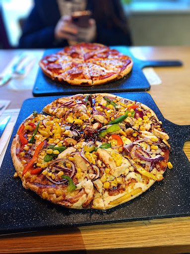 Die Filiale war absolut sauber und die Pizzen -wie gesagt -wirklich lecker. Wer über die Belegung der Pizza meckert,kann sich ja eine extra-Zutat für übersichtliches Geld...
