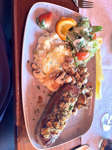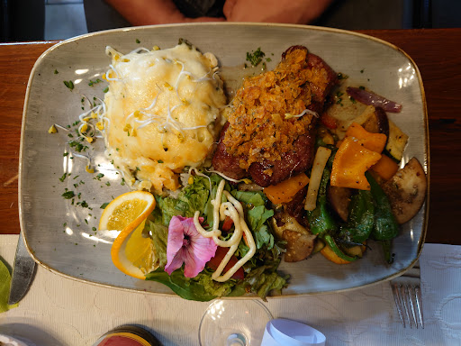 Die Putenbrust Filet war ganz lecker aber ansonsten gibt es da nicht viel zu sagen: • Keine Getränkekarte • Unfreundliche, genervte Bedienung • versalzende Bruschetta • Brot zum Würzfleisch war sehr trocken • Extrem viele Wespen, die den Verzehr von Essen und Trinken nahezu unmöglich...