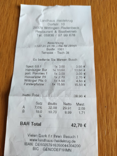 Ich war letzten Samstag mit einer Gruppe von 10 Personen im Landhaus Heidekrug zum Mittag essen. Wir hatten einen netten, abgetrennten Einzelraum (links der Eingangstür) und das Ambiente überzeugte auf den ersten Blick.