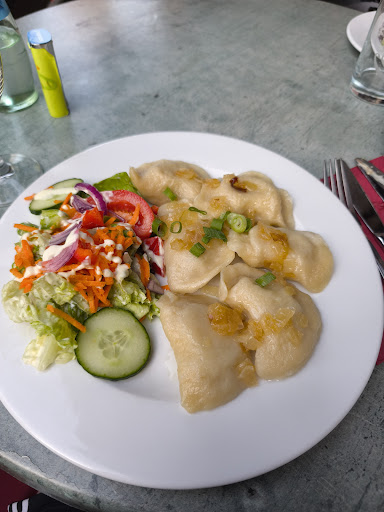 Read moreWir hatten im Vorhinein reserviert, trotzdem wurde draußen leider kein Tisch für uns freigehalten, das war ein bisschen enttäuschend. Nach kurzer Wartezeit haben wir aber dann die nächsten freien Tische draußen bekommen. Die Bedienung war außerordentlich freundlich, trotz Personalmangel an diesem Abend. Wir hatten Extrawünsche beim Vorspeisensalat, die wir dem Kellner nicht ganz verständlich erklären konnten, er hat sich aber wirklich Mühe gegeben und ist sogar nochmal zurückgekommen, nachdem er bereits in Restaurant zurückgegangen ist, um sicherzustellen, dass er alles richtig verstanden hat. Am Ende war der Salat genauso wie gewollt da! Das Essen war lecker, allen voran der Räucherlachs bei den Kartoffelpuffern! Es war alles eher bescheiden gewürzt und etwas fettig, dafür aber richtig knusprig. Schön, dass es solch authentische polnische Küche hier gab! Ich würde einen Besuch hier auf jeden Fall...
