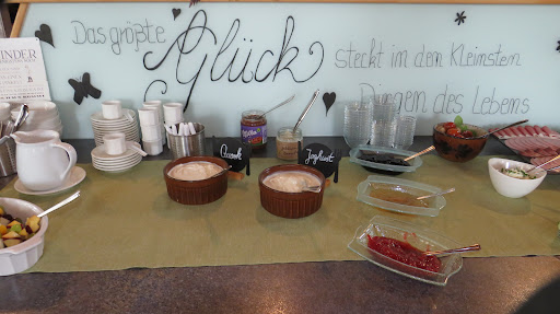 Read moreSehr schönes Café mit Ferienunterkunft. Wir hatten für fünf Tage die Ferienwohnung "Speicher" gemietet, diese war genau richtig für unsere 4-köpfige Familie. Die Wohnung war schön, sauber und war mit allem was man sich wünscht ausgestattet. Es gab sowohl die Möglichkeit einen Brötchenservice in Anspruch zu nehmen, als auch die Möglichkeit im Café zu frühstücken (wie haben beides probiert). Das Frühstücksbuffet war hochwertig und schmackhaft (auch der Kuchen am Nachmittag war spitze), der Service im Café sehr aufmerksam und immer freundlich! Für Kinder gibt es einen sehr netten Spielraum im Café, haben diesen allerdings nur am Abreisetag genutzt. Insgesamt war der Hof sehr familienfreundlich. Es gab ein paar Spielmöglichkeiten draußen direkt an der Unterkunft, zudem Hühner und Schweine. Einen kurzen Fußmarsch weiter konnten wir am Bauernhof zu den Kühen, Schafen und Ziegen. Die Chefin des Cafés bzw. den Ferienwohnungen war stets um unser Wohl bemüht und hat den Kindern (und auch mir) ein paar unvergessliche Momente ermöglicht (Traktor und v.a.: Mähdrescher fahren! :-))) Wir können die Unterkunft wirklich sehr empfehlen und kommen...