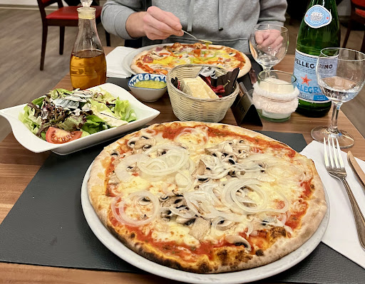 Read moreWent here on a cute date night, we’ve had issues coming here before with borderline discrimination against us as Americans, I say this because we called to make a reservation once and were told they had none available, but then our German friend called and was able to book one. The food is good here, I’ve had pizza and pasta here before. Their pizza has a nice robust sauce and very good cheese, I enjoy a thin crust pizza and theirs is always thin and crispy. It’s good. The workers are kind enough, the menu does not have English so you will need to translate. The veggie pizza my husband had was filled with veggies but he felt like it was lacking cheese. My 4 cheese pizza was amazing and I added prosciutto to...