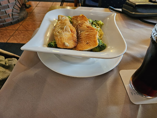 Read moreZu den Zimmern kann ich leider nichts sagen. Zu dem Essen aber schon...Als wir nach einer Fehlinformation durch die Thekenbedienung doch dort sitzen konnten, wo wir wollten, auf sehr unbequemen Stühlen, bekamen wir 2 Speisekarten, eine davon war sehr fettig. Das Essen, 2 x Fischplatte war sehr durchwachsen. Seelachsendstück, vorne glasig und hinten trocken. Lachs war recht gut. Den Rotbarsch hat man wohl durch eine schmale Scheibe Kabeljau ersetzt. Die Krabben gut. Das 'Gemüse' hätte man sich sparen können, blass, wässrig und neutral im Geschmack. Am schlimmsten sind die 'Bratkartoffeln gewesen. Weicher Speck, weiche Zwiebeln und weiche Kartoffelscheiben ohne einen Hauch von Röstaromen. Nach der Frage, wie es uns geschmeckt hat, wurden wir von der asiatischen Bedienung nur angelächelt und sonst kam nichts. Das Bezahlen mit Karte funktionierte auch nicht, Debit und Visakarten kann der veralterte Kartenleser nicht lesen. Alles in allem...NIE WIEDER!!! da hilft nur üben, üben und nochmals üben. Ach so...Der Koch hatte Null Stress. Das Café war...