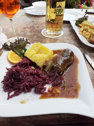 Read moreWir waren 2 x im Cafe Caro essen. Einmal gab es Ente, die war knusprig und lecker. Das 2. Mal hatten wir Rouladen mit Rotkohl und Kartoffeln und ein Steak. Die Roulade und der Rotkohl hätten etwas heißer sein können, waren aber sehr lecker. Beim Steak, das wirklich gut und auf den Punkt gebraten wurde, war die Kräuterbutter leider noch gefroren. Der Kellner ist freundlich, leider etwas "verpeilt". Das Mobiliar dürfte mal erneuert werden und die Sonnenschutzsegel sind ziemlich verdreckt. Update: Dieses Jahr erneut dort essen gewesen. Der Kellner ist nett, leider bekam ich das falsche Essen. Ich hatte Jägerschnitzel bestellt, bekam aber Zigeunerschnitzel. Auf meinen Hinweis darauf sagte der Kellner:" nicht schlimm machen wir neue Sosse drauf " und so geschah das auch.Da es keinen Salat dazu gab nahm ich vom "Salatbuffet". Das bestand aus 4 Sorten Salat mit winzigen Schälchen. Der Salat wurde mit 5,90 Euro berechnet. Das ist...