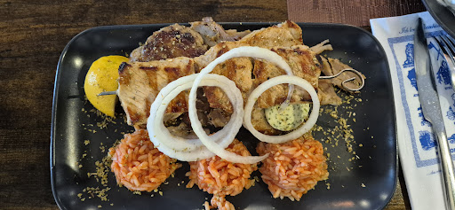 Dann bestellte er den Grillteller und ich den Damianos Teller Auf beiden war das gleiche drauf Gyros (total trocken ) 1 Suzuki spiess ( trocken ) Und hackfleisch Bifteki