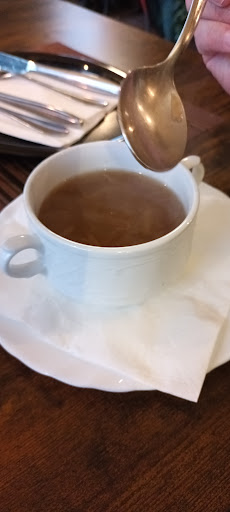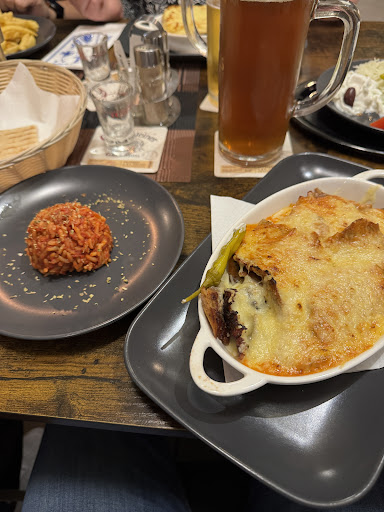 Read moreWir hatten kurzfristig angerufen und eine viertel Stunde später bereits einen Tisch bekommen. Das Essen war schnell ausgesucht, die Getränke, Hefeweizen Erdinger 0,5ltr. / 6,00€ und Rotwein 0,25ltr. / 8,00€ kamen schnell. Der Rotwein Demestica schmeckte mir leider nicht. Die Zwiebelsuppe (wir hatten eine französiche Zwiebelsuppe erwartet) in einer stapelbaren Suppentasse, die nur 1/2 voll war, siehe Bild, war ein Tüten oder Konservenprodukt zum Preis von 7,00€. Wir hatten zusätzlich Zaziki zum Hauptgericht bestellt, ein Dessertteller für 7,00€ zusätzlich und beim Grillteller Pommes statt Reis 1,00€ zusätzlich. Der Beilagensalat mit Fertigdressing und lieblos, die Zwiebeln viel zu dick geschnitten usw. Wir hatten Hunger und haben es gegessen, der Service war sehr freundlich, aber wir würden ehrlich gesagt nicht wieder kommen. Das Preis-Leistungsverhältnis stimmt hier nicht, Fertigprodukte im Restaurant...