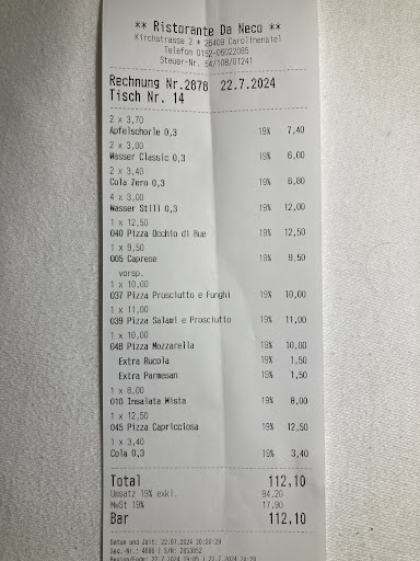 Zu Hause angekommen, schaute ich mir den Beleg doch noch genauer an. Was ich da sah, überraschte mich nun nicht mehr: der Chefkellner hatte uns sämtliche zu Beginn bestellten Getränke...