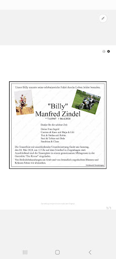 Wir waren hier zur Trauerfeier meines Stiefvaters. Er hatte sich das genau hier gewünscht. Die Vor- und Nachgespräche waren wirklich gut. Zudem haben Senior und Junior exakt ...fast 100 Prozent genau ... geschätzt gehabt, nachdem wir Ihnen die Anzahl der, an der Trauerfeier erscheinenden Trauergäste, mitgeteilt hatten. Es wurde schön und würdig eingedeckt und tatsächlich nur die Anzahl der Anwesenden berechnet. Das zu einem richtig fairen Preis, wenn man sich die Qualität einmal vor Augen führt. Es wurde immer für Nachschub - Schnitzelbuffet - mit Beilagen gesorgt. Auch ehrliche Worte durch den Senior (im Anschluss) Taten richtig gut. Danke. ---Wer diese Bewertung, bei einem solchen Anlass merkwürdig findet, den kann ich verstehen. Wer aber Billy gekannt hat, der kann sich vorstellen, dass er es selber offen so gesagt hätte. Also nochmal... wer gutes Essen, natürlich bevorzugt Schnitzel, essen möchte, der sollte hier einmal erscheinen. Ich glaube nicht, dass jemand enttäuscht sein wird. Preis fair + Essen gut, was...