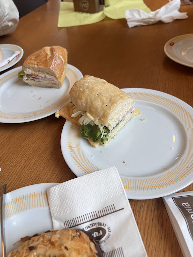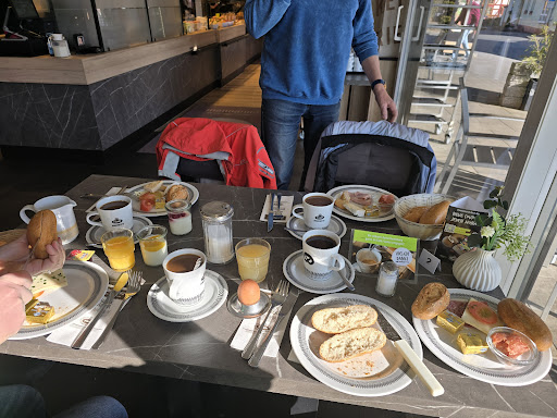 Das gekaufte Gebäck war sehr schmackhaft, was allerdings den Kundenservice angeht..so etwas habe ich noch nicht erlebt. Wie ich hier schon öfters gelesen habe, sind die meisten Angestellten sehr freundlich. Wir wollten morgens in dieser Bäckerei frühstücken. Da ich von außerhalb komme stelle ich mir das normalerweise so vor: -Man wird gefragt ob man zum mitnehmen möchte oder ob man dort essen möchte. Wir wollten uns natrülich gemütlich dort hinstzen und frühstücken was spätestens ersichtlich war als wir unser Getränk bestellen wollten und dies sagten. Wie uns dann die Bedienung anpampte das wäre nur "to go" war der Hammer. Ich meine das Cafe war fast leer, also viele Tische frei. Sie meine das ginge jetzt nicht mehr, da wir ja "to go" genommen hätten. Ich hab nur mit dem Kopf geschüttelt. Nachdem wir dann draußen waren uns sahen, dass die komplette Terasse frei war dachten wir wir fragen nochmal nach, ob wir uns denn freundlicherweiße draußen in die Kälte setzen dürften, aber auch dies wurde verneint mit dem Bezug auf "wir hätten to go". Das hat mit zuvorkommenden Kundenservice ABSOLUT NICHTS zu tun!