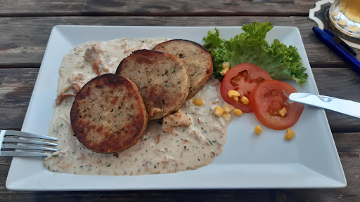 Weitere 7 Minuten später kam eine andere Bedienung mit den Getränken und um uns mitzuteilen, dass eine Essensbestellung 90 Minuten dauern wird. -- Vorschlag: diese Information wäre hilfreich gewesen, bevor die Getränke bestellt werden und/oder an den Tisch kommen. So waren wir quasi in einer Zwickmühle mit den frischen Getränken um evtl. noch ein anderes Restaurant aufzusuchen.