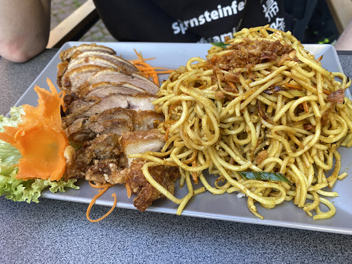 Mir haben die Nudeln mit Ente sehr gefallen, die Ente war knusprig und saftig. An anderen Orten ist es zwar auch knusprig, aber dafür trocken. Meine Kinder hatten gebratenen Reis mit knusprigem Hähnchen gewählt und waren auch sehr zufrieden. Ebenfalls knusprig und nicht trocken. Ich hatte auch nicht das Gefühl mit MSG bombadiert worden zu sein, wie ich es quasi in anderen Imbissen erwartete. Es blieb hier aus und ich weiß ehrlich gesagt nicht, ob sie überhaupt MSG verwenden - würde ich beim nächsten Mal erfragen. Als Vergleich dazu hatte ich die sehr unangenehme Erfahrung, starke Kopfschmerzen zu erhalten, woanders häufig erhalten - war etwas gewappnet und wurde hier sehr positiv überrascht. 😉