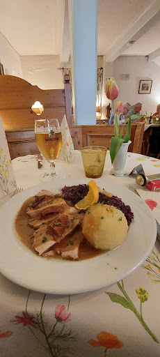 Read moreEins vorweg: leider musste mindestens ein Stern vergeben werden, um eine Bewertung schreiben zu können. Hätte es die Möglichkeit von „0“ Sternen gegeben, hätte ich das nehmen müssen. Altes Fachwerkhaus, urig-nostalgischer Flair. Von der Aussenoptik sehr vielversprechend....um es allerdings kurz zu machen: außen hui, innen pfui!!!! Es wird versucht, mit viel Deko von dem dringend erforderlichen Renovierungs-und Sanierungsstau abzulenken. Risse in den Wänden, Staub, Schmutz in den Zimmern, Gardinen, die halb aus der Schiene gerissen waren (und das in mehreren Zimmern, nicht nur in unserem), dünne und ausgeblichene Teppiche, WC-Bürsten, die schon ihre Beste Zeit hinter sich hatten und wo noch die Reste vom Vorgänger drin hingen. Echt ekelig!!! Das Frühstück war mittelmäßig und das ist noch nett formuliert. Brötchen wie Gummi, liebloses Anrichten, leere Platten wurden nicht mehr aufgefüllt. Wünsche konnten eigentlich nur am Anfang des Frühstückes mitgeteilt werden, danach war dies nicht mehr möglich, da die Servicekraft nicht mehr anwesend war. Fazit: Alte Gebäude haben ihren Charme und den sollte man unterstreichen, was hier, bedauerlicherweise, leider absolut vernachlässigt wird. Alt“ heißt außerdem nicht gleichzeitig „Dreck/Schmutz“. Hier kann man den Betreibern nur wünschen, dass sie Pinsel, Farbe und Putz in die Hand nehmen und die Zimmer auf Vordermann bringen. Dringend!!! Im Internet steht: „einfache Zimmer“. Es spricht überhaupt nichts dagegen, aber auch ein einfaches Zimmer sollte sauber und ansprechend sein - und das traf eben nicht zu. 77€ für ein Doppelzimmer übersteigt die Grenze des Vertretbaren im Vergleich zu dem, was man als Gast vom Zimmer und von der Verpflegung her geboten bekommt, um ein Vielfaches. Die tatsächliche Zimmersituation erklärt bei der Nachbetrachtung auch, warum man im Netz auf der Homepage des Hotels keine Bilder von der Ausstattung der Zimmer zu sehen bekommt. Der Fairness halber muss ich allerdings gestehen, dass ich keine Gelegenheit hatte, die warme Küche in den zwei Tagen Aufenthalt zu kosten. Da der Restaurantbetrieb jedoch Samstag und Sonntag sehr gefragt war, scheint zumindest die warme Küche...