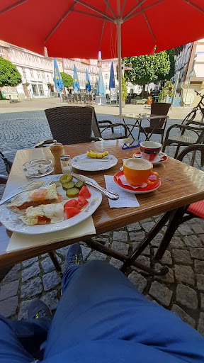 sehr empfehlenswert . wir waren zum Wochenmarkt und hatten die chance genutzt im stadtcafe zu frühstücken . erfreulicherweise ist das cafe für ein solch altes ,Historisches Gebäude doch recht groß und es gibt reichlich sitzplätze .. allerdings waren wir auch relativ früh unterwegs und konnten daher sogar draußen sitzen und in aller Ruhe frühstücken . später hat dieBedienung noch einen zusätzlichen Tisch aufgebaut ,für Kunden die das herliche Wetter nutzen wollten . zur Herrentoilette gibt es Bauartbedingt eine stufe , was den toilettenbesuch für rollstuhlfahrer unmöglich macht(ein kleiner Handlauf an dieser einen stufe wäre hilfreich . ich bin dann(in der Not)mit meiner frau als Begleitung auf die damentoilette damentoilette gefahren ... diese ist sehr geräumig und wenn es dort eine breitere Kabine mit Handgrif alstransfehrhilfe gäbe wäre das hilfreich . wenn eine frau als hilfe mit auf die herrentoilette muss, so ist das halt schwieriger wegen der Urinale. also bitte eine lösung überlegen , denn von einer öffentlichen behindertengerechten Toilette,in der Nähe , wusste niemand etwas . wegen de vielen Einbahnstraßen hat es sich schon schwierig gestalltet einen behindertenparkplatz zu finden . ein Anruf bei der touristinfo (einen Tag vorher)hat mich leider in die Irre geführt obwohl es so einfach hätte sein können . das tolle frühstück im stadtkaffeund das Ambiente am stadtmarkt hat uns aber voll entschädigt und wir kommen...