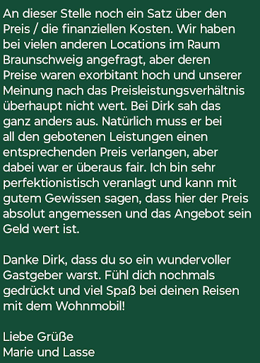 An dieser Stelle noch ein Satz über den Preis / die finanziellen Kosten. - Bitte auf mein Bild für weiteren...
