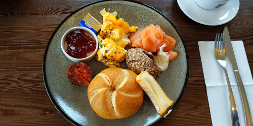 Read moreVielseitiges Bruchbuffet - da bleibt kein Wunsch unerfüllt! Ein Glas Sekt zum Empfang. Kaffee, Tee, Wasser, Orangen-, Bananen-, Apfel- und Kirschsaft satt. Große Auswahl selbstgebackener Brötchen, Brot und Croissants. Waffel- und Crêpesstation - werden auf Wunsch frisch gebacken mit Vanille- oder Schokosoße und heißen Kirschen. Riesige Auswahl an Müsli, Trockenobst, Joghurt und frischem Obstsalat. Frische Salate mit Garnelen und Avocado, Tomate-Mozzarella, Lachs, Kaviar, Ziegenkäse, Pasteten, Käse- und Wurstspezialitäten. Marmeladen, Honig und Nutella. Warme Speisen: Rührei, Maultaschen, Würstchen, Ofengemüse, Schweinesteaks, Kabeljau, Korketten, Rösti. Und das alles zu einem Preis von 15,50€ pro Person. Aufmerksamer und freundlicher Service! Top Preis-Leistungsverhältnis, sehr...