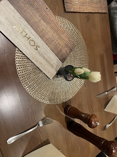 Read moreWir haben für gestern Abend reserviert gehabt. Bei Ankunft gestresstes Personal und wir sollen uns irgendwo hinsetzen. Nach geraumer Zeit die Karten, danach wieder die komplette Bestellung lieblos aufgenommen. Besteck kam erst als wir die Vorspeisen schon hatten... Trotz Stress kann man ein wenig Herzlichkeit zeigen. Vorspeisen waren sehr versalzen und mit extrem viel Knoblauchöl versetzt. Nach langer Zeit und Nachfrage wurden dann die Teller der Vorspeisen mitgenommen. Nach einer guten Stunde kamen die Hauptspeisen die Dank Vorspeisen ausreichend waren aber geschmacklich leider nicht gut. Pommes lasch und ohne Salz, Fleisch lauwarm. Um uns herum wurde fröhlich Ouzo aus- und nachgeschenkt und wir bekamen trotz gutem Trinkgeld nichtmal einen Espresso und das bei einer Rechnung von knapp 90 Euro! Athos war einmal gut. Wir werden dort nicht mehr hingehen. Versuch an einem Sonntag Mittag: ausser uns noch 2 2er Tische. Vorspeise u.a. Oliven. Der Chef wusste dass die Oliven bitter waren. Trotzdem geht die Bestellung an den Gast raus. Wurde hinterher zwar von der Rechnung genommen (erwarte ich auch) aber die Qualität der Hauptspeisen war nicht in Ordnung. Lauwarm und weiche Pommes erwarte ich nicht in einem Restaurant. Das war es jetzt definitiv. Gut dass es...