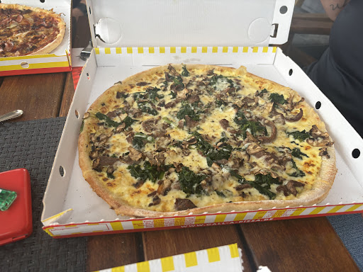 Read moreDie Pizza wurde schnell und pünktlich geliefert. Der Wärmebehälter hat auch funktioniert, so dass die Pizza sehr heiß bei uns ankam. Daher volle Punktzahl für den Service. Die Pizza selber war leider gar nicht unser Fall. Sie sah schon sehr trocken aus, obwohl sie nicht verbrannt war. Sie schmeckte nicht ausgewogen. Die Pizza schmeckte sehr stark nach Gewürzen und überdeckte dadurch leider den Geschmack vom Teig und den anderen Zutaten. Der Rand an sich, war gut, aber da hab ich auch schon bessere gegessen. Optisch war sie sonst gut aufgebaut und arrangiert. Insgesamt gibt es ein paar positive Sachen, aber leider nur 2 Sterne da ich von einer Pizza mehr erwarte. Sie muss leicht und luftig sein, dennoch kroch und man muss schon die Zutaten schmecken. Sie darf halt nicht trocken und...