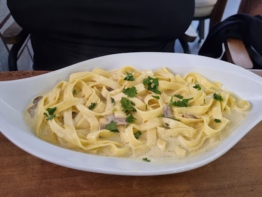 Not that good experience. Long time waiting for order and for food, cold inside - open doors outside where people smoke - cold and smelly. At least 20 euro to pay with card. Service not quite adequate to etiquete. Taking away empty plates when others still eating and taking it away across the table. Otherwise quite nice place, nice furniture, pizza salami tasty, a lot of parking space in the centre of...