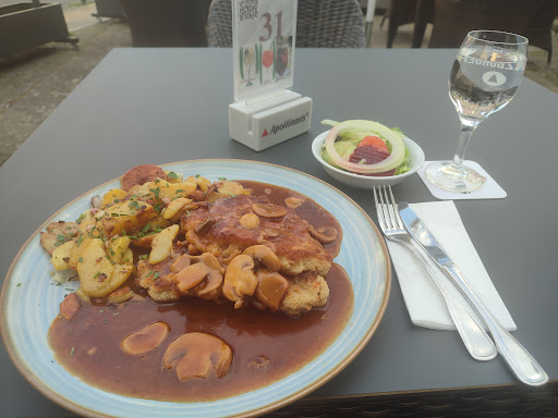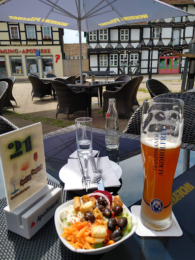 Read moreDas Lokal ist eigentlich nett mit einem tollen Biergarten. Das Essen ist gut, allerdings etwas zu teuer. Aber der Service bekommt eine glatte "sechs"! Zum Bestellen musste man mehrmals rufen, freiwillig kam niemand. Die Wartezeit auf die Getränke war halbwegs erträglich, die auf das Essen war schon grenzwertig. Der Biergarten war gut besucht, aber es war kein Stress. Innen im Lokal war kein einziger Tisch besetzt. Dann haben wir, mit einigen Schwierigkeiten, Getränke nachbestellt. Darauf gewartet haben wir, mit dreimaligem Anmahnen bei der Bedienung und am Tresen, mehr als eine halbe Stunde! Die zog es vor, mit anderen Gästem entspannt zu schwatzen. Dann haben wir noch Nachtisch und Julischka bestellt. Nach 20 Minuten hatte sich immer noch nichts getan, die Bedienung war weiterhin in Plauderstimmung, an anderen Tischen. Wir wollten bezahlen und mussten auch darauf mehr als 1/4 Stunde warten. Sowohl Nachtisch als auch Likör haben wir nicht mehr bekommen... In der Zeit, die wir dort saßen, haben an drei Tischen (!) die Gäste ihre Tische unverrichteter Dinge wieder verlassen. Noch schlimmer als das Gesschilderte ist, dass sich der Chef nicht für den schlechten Service interessiert. Wenn man ihm mitteilt, was sich bei seiner Abwesenheit im Lokal tut, wird man noch beschimpft... Hackepeter - so schnell...