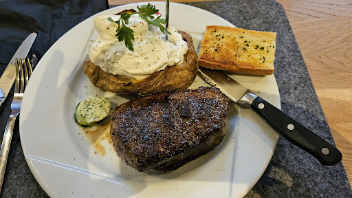 Read moreEin Freund hatte uns in das Restaurant eingeladen. Von außen sieht es urig aus und innen ist es angenehm eingrichtet. Meiner Frau und mir haben auch die tollen gepolsterten Stühle gefallen. Sehr bequem. Die Speisekarte zeigte eine überschaubare aber gute übersicht an Speisen und Getränken. Wir hatten uns ein 200g argentinisches Rumpsteak und für unsere 2 Kids Kinderschnitzel mit Pommes bestellt. Man konnte beim Steak entweder einfach Pommes oder Folienkartoffel mit sour cream wählen. Unser Freund nahm letzteres. Die Kinderschnitzel hatten ne gute größe, die Pommes reichten locker. Das Steak hatten wir medium bestellt. Perfekt getroffen, zart und zerging fast auf der Zunge. Die Pommes waren schön kross und lecker. Auch das Schnitzel der Kinder war sehr lecker. Am Nachbartisch gab es ein indisches Gericht. Der Reaktion der Gäste nach sah es nicht nur lecker aus, sondern schmeckte wohl auch sehr gut. Der Service war auch top. Alle sehr freundlich, auch den Kindern gegenüber (die Kids sind 8 und 11). So manch andere Restaurants beachten Kinder gar ned. Ist aber zum Glück die Seltenheit und hier definitiv nicht der Fall. Preislich kann ich nur sagen: absolut fair!