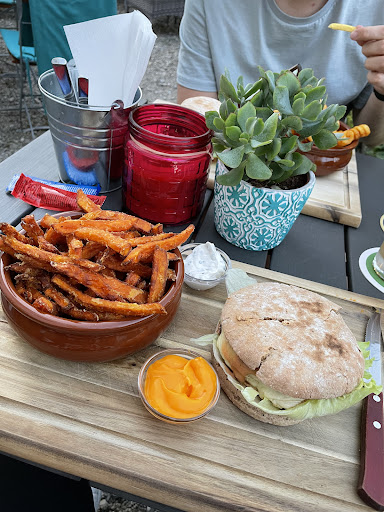 Die zweite Erfahrung war aber leider nicht besser. Wir haben über Lieferando was bestellt zum liefern. Im bestell-Menu steht „alle Burger mit Pommes serviert“. Eins unsere Burger ist ohne Pommes angekommen. Noch dazu war der bacon auf beiden Burger schwarz verbrannt. Unter Vorspeisen steht auch das alle Vorspeisen mit 3 dips serviert werden. Keine dips waren vorhanden. Tomate war auch auf ein von den Burger wo gefragt wurde bitte keine Tomate. Also habe ich knapp 40€ bezahlt für zwei Burger mit verbrannten bacon, eine kleine Portion Pommes und ein paar panierte Hähnchen Stücke. Leider sehr enttäuscht.