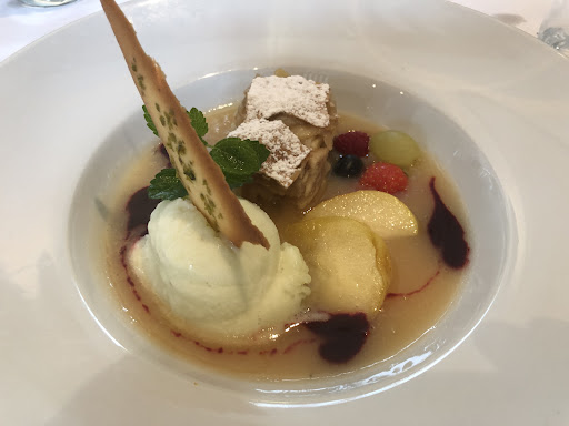 Im Juli 2016 hatten wir ein 4 Gänge Menü für 49,50 Euro bestellt. Die angekündigten Gaumenfreuden bestanden aus einem winzigen Gruß aus der Küche, ein sehr kleines Stück Matjesfilet auf einer Scheibe Pumpernickel, dann noch einige Scheiben Baguette mit Olivenöl und Salz, das wars dann schon. Im Hauptgang zwei sehr bescheidene Stücke Rehfilet, dabei ein frittiertes Bällchen aus vermutlich Semmelbröseln, ziemlich trocken und schon vom Vortag wirkend (so, wie die Reste einer Panade zusammen gemixt und zu Bällchen ausgebacken). Die "Krönung" war die Nachspeise, genannt "Dessertvariationen", die in Form einer Brombeersorbetkugel auf Jogurt mit Früchten präsentiert wurde. Auf die Nachfrage, ob dies die Desservariation sein solle, erhielten wir als Antwort: man würde immer gerade variieren, was aktuell aus möglichen Dessert ausgewählt werden könne. Gnädigerweise erhielten wir dann noch zwei weitere Sorbetkugeln mit anderen Zutaten (sehr einfallsreich!!). Insgesamt war das Menü für einen (früheren) Sternekoch sehr enttäuschend, absolut kleinlich und geizig wirkend. In manchen einfachen Dorfwirtschaften haben wir schon besser gegessen und vor allem bei stimmigem Preis-Leistungs-Verhältnis. Einzig die schöne Sommerterrasse konnte uns noch versöhnlich...