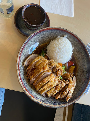 Read moreDas Essen war optisch sehr ansprechend angerichtet. Der tiefe Teller war super um den Reis gut essen zu können. Allerdings habe ich noch nie irgendwo Schweinefleisch süß -sauer so zubereitet bekommen. Es waren weder fritierte Bällchen noch ummantelte Stücke. Es war eher gedünstet. Daher zäh und unansehnlich grau. Geschmacklich aber gut. Die süß -saure Soße war leider geschmacklich recht neutral. Was mich am meisten irritiert hat war das doch sehr deutsche Gemüse. Keine Sprossen oder Bambusstreifen. Brokkoli, Karotte, Bohnen etc. Dazwischen etwas Ananas und ich glaube Trauben und Mango. Letztere leider sehr zerkocht. Preislich war die große Portion wirklich angemessen. Trotzdem werde ich meinem Haus China-Imbiss treu bleiben. Ich liebe nun mal wirklich Soße die süß und sauer ist. Aber vor allem das typisch...