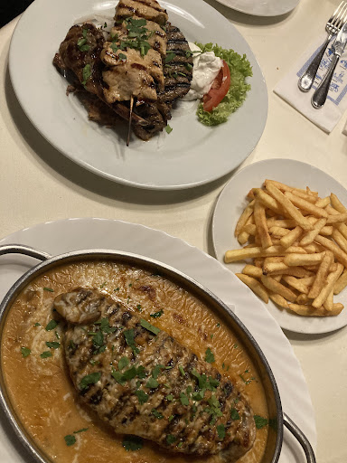 Meine wahl auf der karte waren Spieße mit reis, zaziki u Salat, ich fragte ob ich anstatt reis bitte pommes haben könne, dies wurde bejaht. Als das essen kam war auf meinem teller reis, und als ich nach den pommes fragte, hies es man bringe gleich welche, dem war nicht so, nach 2 mal nachfragen, habe ich es gelassen und nur Fleisch ohne beilage gegessen, da ich den tomatenreis einfach nicht mag, als die Bedienung, glaube der chef am tisch abräumte, habe ich gesagt nun brauch ich au keine pommes mehr.