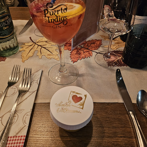Wir wurden sehr herzlich von der Chefin empfangen. Wir hatten Tisch 3 und der war schön eingedeckt für unser bevorstehendes Gänse Menü.