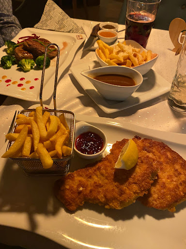 Read moreWir waren schon 2 mal im Restaurant obwohl dieses circa 130 Kilometer von uns entfern liegt. Diese beiden Wege haben sich aber absolut gelohnt. Beim Vorspeisen Salat kann man aus einem reichhaltig gestalteten Salatbuffet wählen. Dieses ist sehr ansehnlich in einem alten Wagen ausgestellt. Bei der Auswahl ist für jeden etwas dabei und alle von uns getesteten Salate haben wirklich gut geschmeckt. (Dazu stehen noch einige Dressings und Öle bereit, mit denen man seinen Salat noch nach Belieben verfeinern kann. Das Bruchetta hat meiner Begleitung auch geschmeckt und war sehr ansehnlich serviert worden. Bezüglich der Hauptgänge war das Fleisch sowohl beim Roastbeef Rösti als auch beim Surf an Turf auf den Punkt gebraten und sehr sehr zart. Das Surf and Turf auf diesem Bild ist ohne Garnelen, da ich keine Meeresfrüchte esse. Das Schnitzel wurde bei beiden Besuchen von meiner Begleitung bestellt und hat dieser in beiden Fällen gut geschmeckt. Neben dem Eis was man als Nachspeise wählen kann, bietet die aktuelle Karte noch eine Waffel aus Blätterteig und einen Apfel Crumbel an. Letzterer hat leider sehr nach der dunklen Schokoladensauce geschmeckt, welche großzügig darüber verteilt wurde. Alle anderen Komponenten auf dem Teller waren aber sehr lecker. Da wir noch zurück fahren mussten, kann ich keine Referenz zu den alkoholischen Getränken abgeben. Die nicht alkoholischen Getränke bieten aber eine sehr große Auswahl an und sind geschmacklich auch top. Besonders die Heißgetränke „heiße weiße Schokolade“ haben wirklich super geschmeckt. Das Service Personal sucht seine Gleichen. Wir haben noch kein Lokal mit einem solch zuvorkommenden und freundlichen Personal erleben dürfen. Alle Angestellten sind auch sehr schick gekleidet. Das Ambiente im oberen Bereich ist gestaltet mit historischen Bildern, welche die Stadt zeigen. Im Kontrast dazu steht die untere Etage, welche sehr modern und edel gestaltet ist. Die Online Reservierung ist absolut unproblematisch und auf Wünsche wird dort auch sehr zuvorkommend...