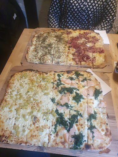 Der Schwerpunkt bei den Speisen liegt -der Name der Lokalität legt es schon nahe- bei Flammkuchen und Pizza. Daneben noch eine reichhaltige Auswahl an Salaten und einige Fleischgerichte.
