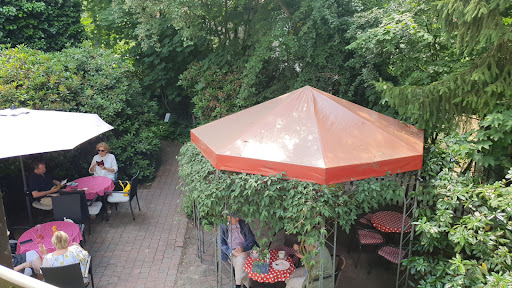 Das Cafe befindet sich im Hinterhof hinter der Galerie beziehungsweise unter den Geschäften. Der Innenraum ist recht klein, aber im Außenbereich befinden sich genug Sitzplätze in einem gemütlichen kleinen Innenhof. Der Service ist sehr schnell und von typisch norddeutscher Art, direkt aber freundlich. Die Kuchen und Torten sind hausgemacht, recht süß aber auch sehr lecker. Serviert wird alles in buntem Geschirr, jede Tasse und jeder Teller anders und ein kleines Kunstwerk.