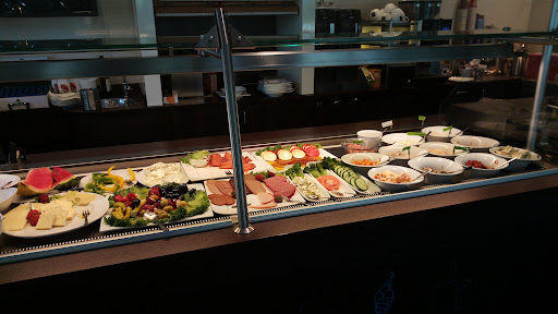 Mit arabischen Kleinigkeiten ergänzt. Es gibt ein paar leckere hausgemachte Aufstriche wie Dattel, Tomate, Kräuter. Börek, Rührei mit Tomate, Gebratene Champignons, Gegrillte Oliven. Aber natürlich auch Klassiker wie Tomate Mozzarella, Pancakes, Bacon, Mett, Nürnberger, Käse und Schinkenplatte als auch Rührei. Brötchen wie man sie vom Bäcker kennt, sehr gut. Heißgetränke sind inkludiert.