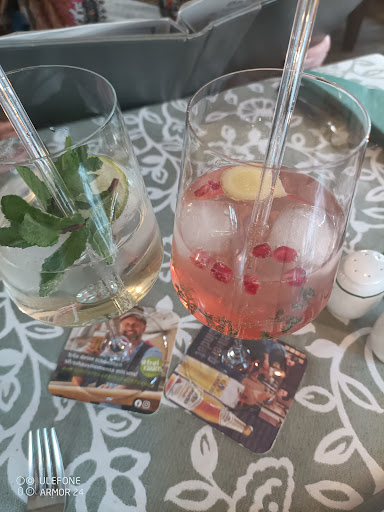 Ich entschied mich für einen Ingwer-Granatapfel-Topfen auf Eis, eine geschmackliche Offenbarung. Die Kombination aus frischem Thymian, Ingwer und Granatapfelkernen war erfrischend, aromatisch und perfekt ausbalanciert. Meine Frau wählte eine Hugo-Spritz-Limonade mit Minze auf Eis spritzig, leicht und unglaublich erfrischend.
