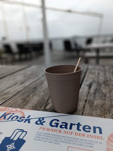 Read moreGrundsätzlich spricht nichts gegen einen Besuch auf der künstlich aufgeschütteten Insel. Wer was essen möchte, sollte sich vorher im Klaren sein, dass selbst die Currywurst wie die Pommes abgezählt in Weggläser Service werden. Ansich eine schöne und coole Idee aber der Inhalt ist echt unter aller Kanone ( wie passend :) . Für ganze 7,80,- bekommt man 4 kleine Stücken von einer Currywurst und ein paar Pommes. Wer glaubt satt zu werden der irrt. Den Vogel abgeschossen hat der Laden mit Wespenfallen ( Gläser mit O-Saft ) . O - Ton war auf Nachfrage; Das seien wohl Kundengläser. Naja zugegeben haben wir auch nicht mit einer ehrlichen Antwort gerechnet. Wir werden uns noch überlegen ob wir das an das zuständige Amt weiterleiten, bis dahin setzen wir keinen Fuß mehr...