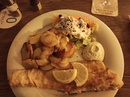 Read moreHier ist eigentlich gar nichts gut oder zumindest akzeptabel. Der Service ist total überfordert und macht viele Wege doppelt und dreifach. Wir waren mit drei Personen essen jeder Teller wurde einzeln gebracht. Als alle ihr Essen hatte haben wir noch nach Besteck fragen müssen. Zum Essen: Ich hatte Matjes Hausfrauenart mit Bratkartoffeln. Hatte mich darauf gefreut. Es gab zwei salzige Heringsfilets in Sahne versoffen, einige Zwiebelringe darüber verteilt und daneben einige Apfelspalten. Die Salatbeilae war grüner Salat mit Alibi Gurken und Tomatenscheibe und einige Mührenraspel. Darüber ganz viel süßes Dressing. Die Bratkartoffeln streiften vor Fett waren labberig und lauwarm. Für mich definitiv zuviel Pfeffer aber das ist Geschmackssache! Meine Frau hatte ein Holsteiner Schnitzel mit Bratkartoffeln, das Schnitzel schmeckte wie billige TK Ware - das Spiegelei war gut - war ja auch nicht so schwer 😇🤣! Mein Sohn hatte Sülze mit Bratkartoffeln. Die Sülze hatte weinig Fleisch dafür viel Fett zudem war sie süß - das kenne ich so nicht! Bratkartoffeln bei meiner Frau und Sohn genauso miserabel wie bei mir! Fazit: Wer lecker essen gehen möchte ist hier definitiv falsch! Befremdlich fand ich zudem, das man sich weder per Luca registrieren kann noch muss man einen Zettel ausfüllen. Wahrscheinlich hat das der Service vergessen! Einmal aber garantiert...