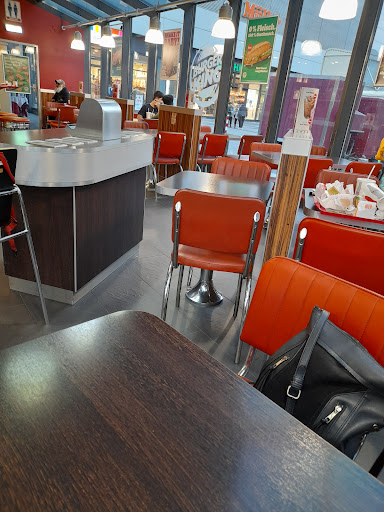 Ich fand es zu teuer fĂŒr das fast komplett erkaltete Essen. Zwar wurde mir ein Teil des Geldes erlassen aber der Servicemitarbeiter meinte etwas von wegen er gibt aus aber dann hĂ€tte ich nicht den kompletten Burger bezahlen mĂŒssen bzw. ĂŒberhaupt etwas denn ausgeben ist schlieĂlich ausgeben es sei denn es hat sich etwas bei der Bedeutung inzwischen geĂ€ndert. Das Ambiente gefĂ€llt mir nicht weil die vorbei-strömenden Menschen einen dazu veranlassen sich zu beeilen weil es eine gewisse Hecktik verströmt. Geschmacklich fand ich die BĂŒrger langweilig und ist nicht das was einem durch die Werbung suggeriert wird. Alles im allem eher verschwendetes Geld nĂ€chstes mal gehe ich lieber zu Brothers Burger dort bekomme ich wirklich etwas gutes vorgesetzt fĂŒr das selbe Geld. Was ich allerdings zugeben muss ist das ich vorher schon etwas gegessen habe und es mir vllt auch deshalb nicht so recht geschmeckt habe aber es kann nicht alleine daran liegen, mir wurde jedenfalls ein bisschen schlecht nach dem letzten Bissen den ich in mich reingezwungen habe, ich wollte das Essen, wenn man das so nennen kann, denn FastFood ist wie schon bekannt schnell hergestellt unter Zeitdruck und fĂŒr gutes Essen muss man sich Zeit nehmen damit die Zutaten auch zu ihrer "BlĂŒte" kommen können und das Essen richtig gut schmeckt,...