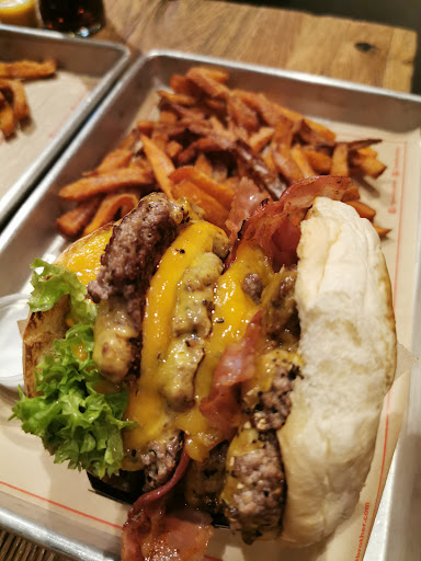 Read moreEasily the best burger in town and probably my favourite burger ever. They use angus neck meat to grind their patties which makes it quite fatty, but therefore delicious. It's by far the juiciest burger you can get. Bacon and cheese is not used sparingly either. You can get extra patties for a small but fair charge. The sweet potato fries are also worth a try. It is a little pricey for Germany but the quality is well worth it. The regular crowd proves this. Definately give it a try...