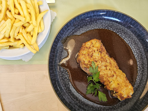 Read moreNachdem wir Mitte Mai von der Ruhr über die Glückauftrasse nach Wuppertal geradelt waren, hatten wir ordentlich Hunger. Die Kunst bestand jetzt darin, in der Nähe der Radtrasse ein gescheites Restaurant zu finden, denn auf Döner & Co. hatten wir keine Lust und ins Tal runter (und nachher wieder hoch) wollten wir auch nicht. So fiel die Wahl dann (zum Glück) auf das Restaurant "Neue Welt". Dort bekamen wir am frühen Abend ohne Probleme ohne Reservierung einen Tisch. Auf der Karte sprachen uns gleich mehrere Gerichte an, so dass die Wahl durchaus schwer fiel. Wir entschieden uns letztendlich für das argentinische Rumpsteak 'Strindberg' mit Zwiebel-Senfkruste (32,9€) sowie die 200g Zwiebelroststeaks vom Rinderrücken mit Senfkruste, Bratenjus, Röstzwiebeln und Meerrettich (28,9€). Dazu gab es jeweils Pommes Frites sowie einen guten Beilagensalat. Beide Hauptgerichte schmeckten ausgezeichnet und hatten auch das gewisse Etwas. Der Koch in der Neuen Welt versteht sein Handwerk. Klare Empfehlung...