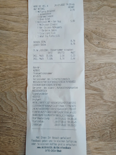 Insgesamt vier Bestellung habe ich heute Abend, ~30 Minuten vor Feierabend, über die App aufgegeben und via PayPal bezahlt. Da ich mit meinen Kindern im Restaurant essen wollte, habe ich über die App „hier essen“ ausgewählt. Dort musste man eine Tischnummer eingeben. Da im Restaurant keine Tischschilder vorhanden waren, haben wir den Schichtführer an der Kasse gefragt, welcher sagte, es gäbe keine in diesem Restaurant. So haben wir erstmal gewartet. Da ich davon ausging, das die Bestellungen mit der Tischnummer 01, welche ich dann einfach selbst gewählt habe, nicht richtig zugeordnet werden können, habe ich meinen Sohn nach vorne geschickt, um der Packerin unsere Nummer über das Handydisplay zu zeigen (damit sie diese dann zuordnen kann). Sie meinte wohl nur zu ihm, er solle warten. Da die Bestellungen aber mittlerweile schon längst hätten fertig sein müssen, bin ich dann selbst nach vorne gegangen, um der Packerin die Situation zu erklären. Ohne mein Anliegen überhaupt verstanden zu haben, meinte sie dann zu mir ich solle ihr die Nummer geben die oben auf dem Display angezeigt wird. Ich versuchte erneut ihr zu erklären, das ich zum vor Ort essen gebucht habe und diese Nummer nicht oben angezeigt wird sondern nur auf deren Display, da das Essen zum Tisch gebracht werden sollte. Daraufhin sagte sie zu mir „das ist nicht bezahlt, dann müssen sie erst bezahlen“. Zuvor habe ich bereits erklärt, dass ich bereits über Paypal bezahlt habe etc.. sie ignorierte das einfach. Dem Schichtführer habe ich ebenfalls versucht das zu erklären, er verstand das jedoch genauso wenig und antworte genau wie die Packerin; „wenn bezahlt wäre, würde dies auf dem Display ja angezeigt werden“ und „Sie sind nicht die alleine hier, da müssen Sie warten wie alle anderen auch“. Super unprofessionell und unfreundlich. Da ich gemerkt habe, das beide gar nicht aufnahmefähig sind, habe ich es dann so belassen und wollte zurück zum Tisch gehen. In dem Moment als ich mich umdrehte um zu gehen, stöhnte die Packerin „oh mein Gott“. Mir war klar, dass das auf mich bezogen war. Darauf entgegnete ich ihr mit den gleichen Worten in fast gleich genervter Tonlage. Der Schichtführer, der wieder an der Kasse Kunden bediente, sagte dann in lautem und streitlustigem Ton „dein Gott ist auch mein Gott“ zu mir. Da erklärte ich ihm, was seine Packerin gesagt habe und ich ihr letztlich bloß nachgeäfft habe, da ich ihr Verhalten sowie ihre Worte mir gegenüber als unfreundlich und respektlos empfunden habe. Sehr grenzwertig die beiden Angestellten, aber scheinbar ein super Team 😆. Der Schichtführer, welcher die Pommes übrigens nebenher zubereitet hat, hat vergessen diese zu salzen und lang genug abtropfen zu lassen; nebenbei erwähnt.
