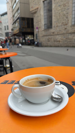 Read moreVerstehe die ganzen guten Rezensionen nicht... Welcher Service wird hier gelobt? Es ist ein reines Selbstbedienungscafé (was darüberhinaus noch nicht einmal kommuniziert wird). Ich kenn mich in der Gastro aus und war sehr verwundert. Keine Info auf den Tischen etc. Die Gäste müssen sich gegenseitig darauf hinweisen. Dafür sind die Preise dann doch zu hoch- Einen Cappuccino bekomme ich bei Cafés in der Umgebung für weniger oder den gleichen Preis (inkl. Bedienung und Trinkgeld). Bei so viel Kundschaft kann man allerdings auch solche Preise nehmen. Warum sich so viele Gäste dieses Café aussuchen bleibt für mich ein Rätsel. Die gute Lage ist für Laufkundschaft auf jeden Fall ein Grund.