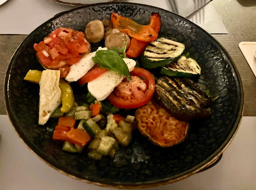 So ganz nebenbei haben wir richtig gut gegessen. Die Speisekarte präsentiert sich schön übersichtlich, ein paar Tagesempfehlungen runden das kleine Angebot ab. Vorweg gab es vom Haus frisches Brot mit guten Oliven (nicht geschwärzt, ganz wichtig) und einem leicht säuerlichen Dip, der an Aioli erinnerte. Anschließend teilten wir uns einen vegetarischen Vorspeisenteller mit Bruschetta, Tomate-Mozzarella und gegrilltem Gemüse. Unsere Hauptspeisen folgten nach einer angenehmen Pause, für den Liebsten gab es auf den Punkt gegarte Fettuccine mit einer gut gemachten Rinder-Bolognese und für mich das Argentinische Rumpsteak. Steaks beim Italiener und Layla waren bislang nicht die besten Freunde, das dürfte sich spätestens jetzt geändert haben. Das perfekt medium gebratene Fleisch mit leichten Röstaromen hatte einen erstaunlich guten Eigengeschmack und auch die Beilagen konnten punkten, sehr schön das knackfrische Mischgemüse mit leichtem Biss und die wunderbar aromatische sowie leicht pikante Pfeffersauce. Statt der angekündigten Rosmarinkartoffeln wurde ein cremiges Kartoffelpüree serviert, für mich eigentlich okay, aber unser Kellner bestand darauf, eine Portion Kartoffeln nachzureichen. Sehr, sehr nett!